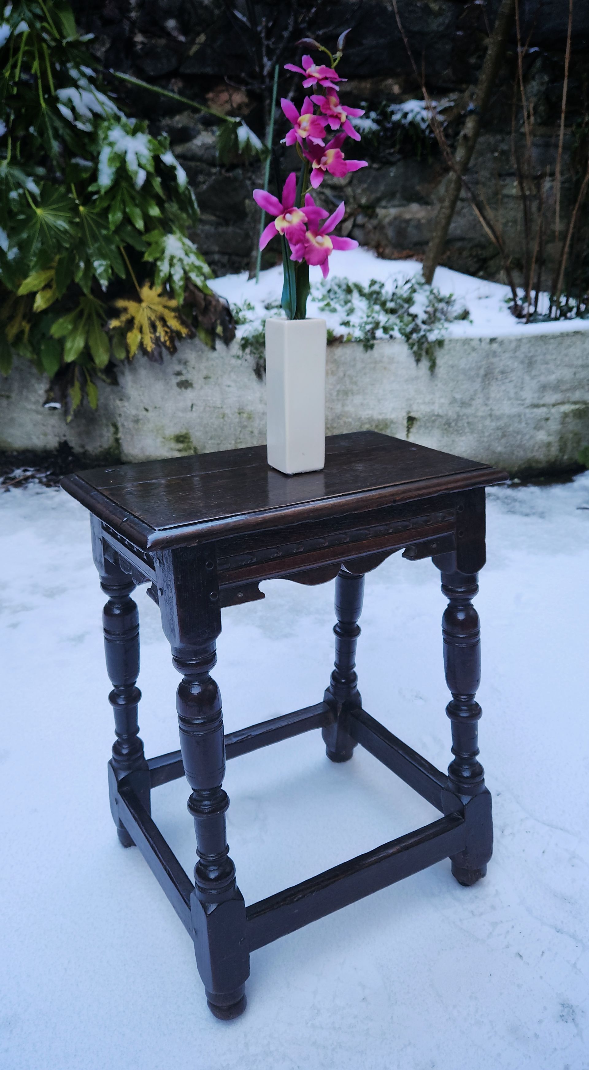Joint stools were one of the most versatile pieces of furniture and were used for a variety of different purposes. They came in varying sizes and heights and saw different uses, being kept to one side within the room these stools could be brought out quickly and allow people to sit with little or no trouble. Also known as coffin stools they would come in pairs some being used to hold the coffin during a wake, one at the foot one at the head, yes I know this is somewhat macabre, but they were extremely practical things and as I mentioned before where used in a number different way. You would think these days they would have fallen out of fashion but they are extremely popular and ones of this age are extremely rare.